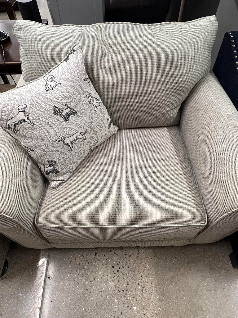 Upholstered Chairs The 2214 Chair, made by Albany Exposed Wood Leg Loose Pillow Dimensions Depth (front to back) 37" D Width (side to side) 43" W Height (bottom to top) 36" H