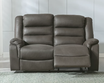 Description Embrace contemporary comfort with the Welota reclining loveseat. Its richly neutral upholstery and no-fuss design give a new meaning to relaxed refinement. A double bustle back and curved armrests round out the look. Dual-sided recliner Attached cushions Gray upholstery Pull tab reclining Estimated Assembly Time: 15 Minutes Fabric Details Body: Polyester (100)% Dimensions Width: 60.00" Height: 41.00" Depth: 37.00"