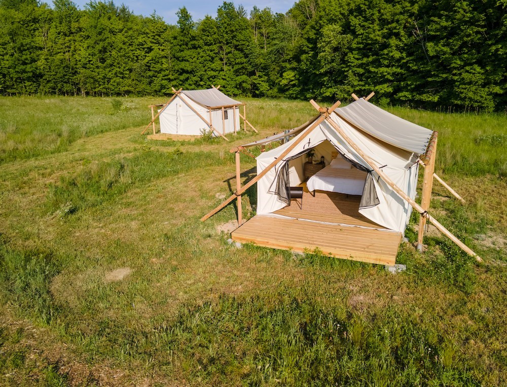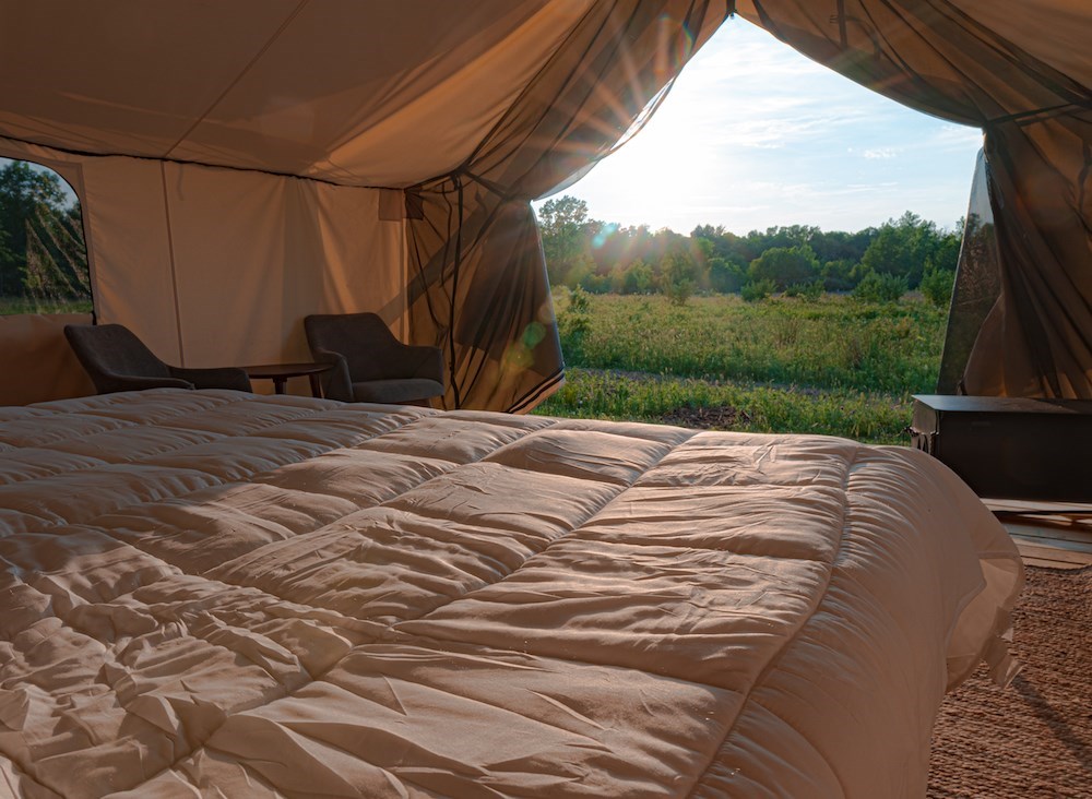Looking for a unique place for a family reunion, company retreat, or bachelor/bachelorette party? Whatever your needs, look no further than Off Map, a luxury camping site in beautiful Southwest Michigan. We offer full site bookouts, meaning that your group will be the only guests on property. Relax, unplug, and recharge under starry night skies and the smells of s’mores and bonfire. Enjoy a BBQ dinner prepared by a private chef for one night and live campfire entertainment. Our team is here to help you plan every part of your event, making this a memorable and turnkey experience. INCLUDES: - Two nights for up to 40 in luxury safari tents (20 total tents) - Complimentary coffee and a light breakfast - Live campfire entertainment - Private chef for one night (BBQ dinner) Each of our tents is furnished with luxurious mattresses, high-quality linens, and charming decor. Our shared bathhouses provide cozy, clean places to shower each day, and our 5 en-suite tents provide guests with a private bathroom. In short, at Off Map, you can enjoy nature while feeling pampered. Details: 2 nights / 20 bedrooms / Sleeps up to 40 Restrictions: Based on availability. Not valid over holidays. You'll contact the provider directly within 12 months of purchase to select dates and book the package. Valid: Valid May 1 - Oct 31 for Sun - Wed check-ins