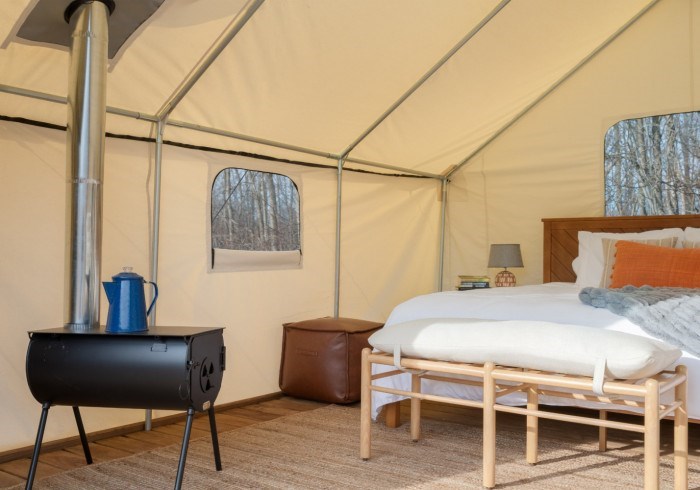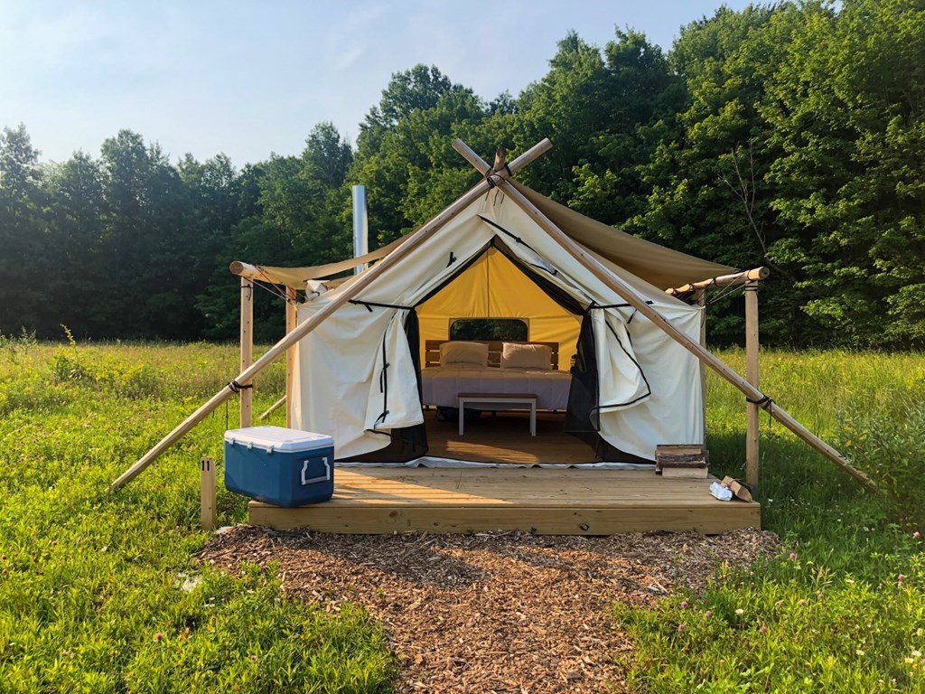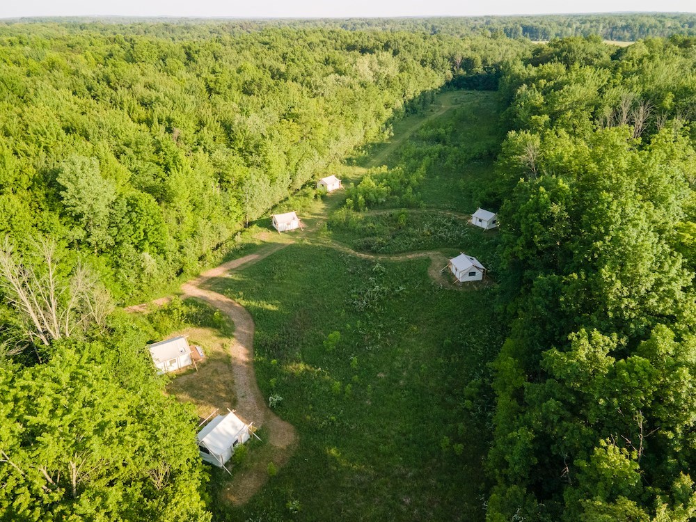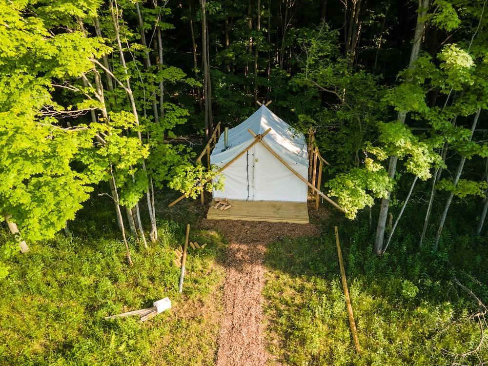 LOCATION Off Map's address is 63401 8th Avenue, South Haven, Michigan. We are a 10-minute drive from downtown South Haven and a 25-minute drive from Saugatuck. Off Map is located in Southwest Michigan, near some of the area's most popular coastal resort towns. Enjoy dining, shopping, and beaches all within a 10-minute drive. Not to mention wineries, breweries, hiking, boating, orchards, and more! COVID-19 By definition, glamping is a good way to travel safely during the COVID-19 pandemic. Most of your time will be spent outdoors, and your tent is private to you and your traveling partners. Our cleaning regimen adheres to CDC guidelines, and common spaces and bathrooms are cleaned regularly to ensure a healthy, comfortable experience. You can read more about how we're making sure everyone stays safe and healthy here. PET POLICY There is a pet fee of $25 per night to cover additional cleaning expenses. Additionally, you will be required to sign a pet waiver upon checking in. Pet owners are responsible and liable for their animals' actions at all times and release Off Map of any liability resulting from their animals being on the property. We do not allow pets with a history of aggression to visit Off Map. Pets are to remain on leash at all times, and cannot be left unattended on the property. Pets are not allowed in our indoor common areas. WIFI We have intentionally made Off Map WiFi-free - we want you to come and disconnect from the world, enjoying time outdoors with your friends and family. We understand that emergencies happen - if you need a WiFi connection while staying with us, let us know and our team can help you access our office internet connection. DINING Each morning, we provide our guests with complimentary coffee and a light breakfast to start the day. While we do not have a restaurant on-site, we do have a few grills for our guests to use that you are welcome to borrow. We ask that guests not bring their own grills. If you would prefer to go out for meals, we are happy to recommend some of our favorite local eateries around South Haven and Saugatuck. For this package, we will bring in a private chef for a group dinner one evening.