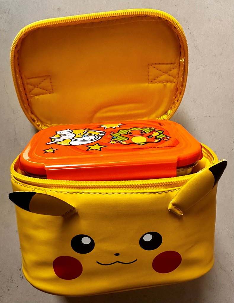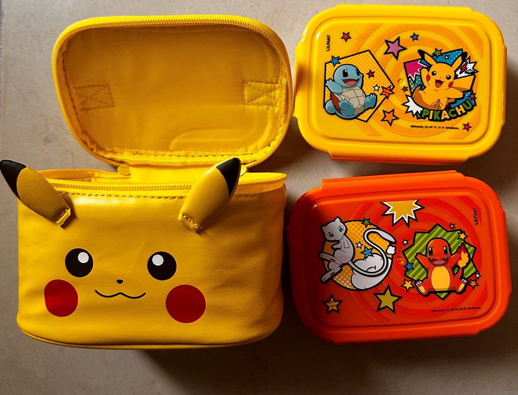 Pokémon lunch set - perfect for kids who love Pickachu Includes water bottle, water bottle holder, 2 mini bento boxes, a bento box holder, and 3 packs of 10 trading card ($45 value)