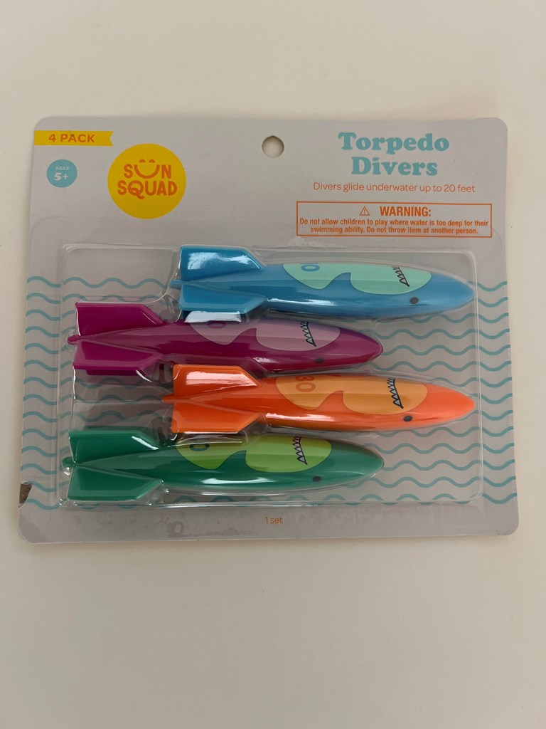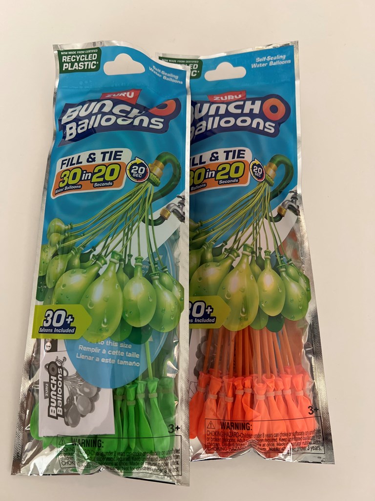 1x foldable storage container 2x beach towels 2 x 30 water balloons 1x Torpedo divers 1 x Speedo jr. swim google 1 x Inflatable swim tube 1 x Water bottle Total Value $50
