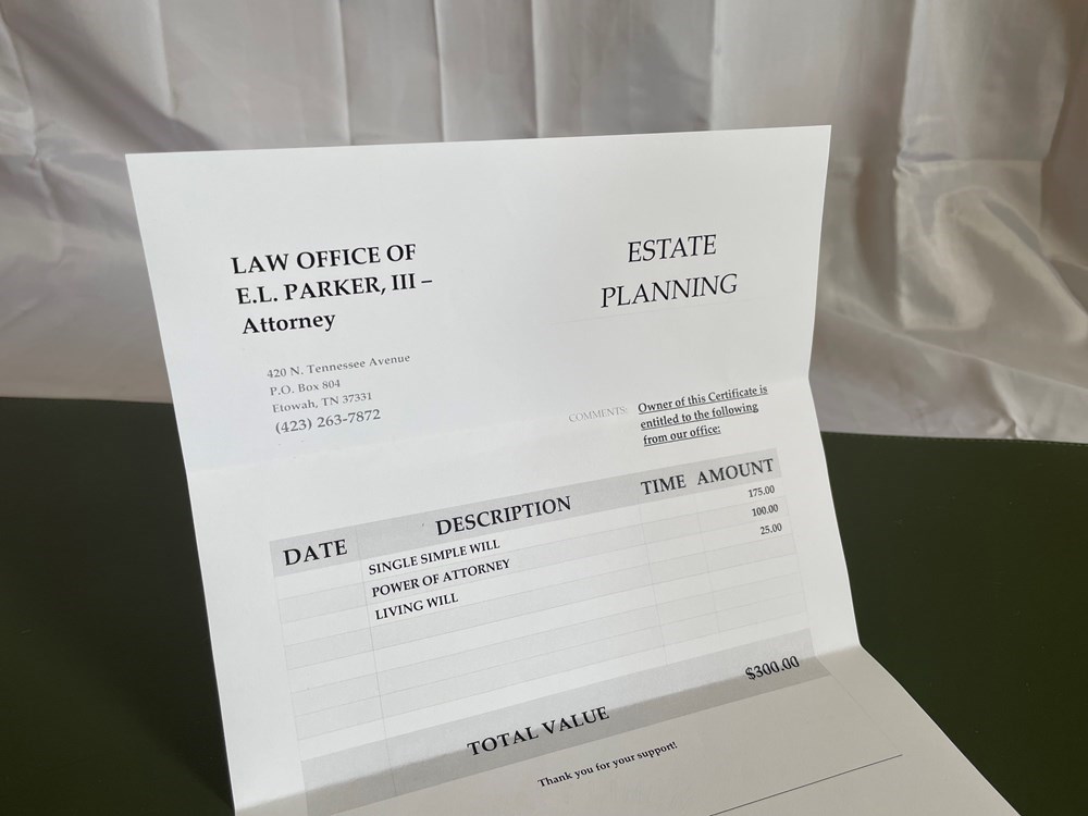 Single Simple Will, Power of Attorney, and Living Will. Valued at $300.00, this is great for an individual who is wanting to prepare personal legal documents for the future.